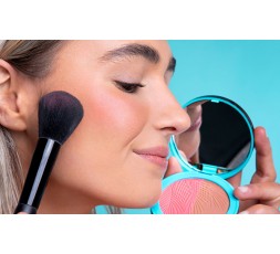 Aanbrengen op de wangen en jukbeenderen, vervagend richting de slapen.