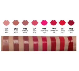 Het assortiment van 8 tinten geeft een compleet kleurenpalet met nude, rood, roze en fuchsia. Verpakt in een felrode metallic huls en de perfecte applicator om gelijkmatig en precies aan te brengen.
